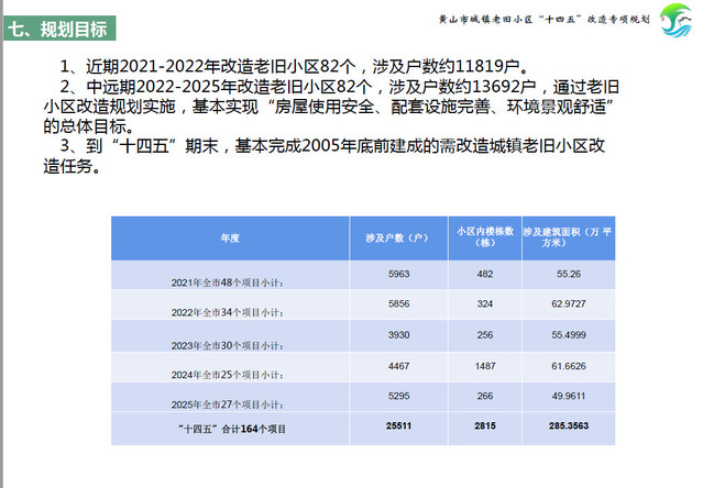 黄山市城镇老旧小区“十四五”改造专项规划(2021—2025)