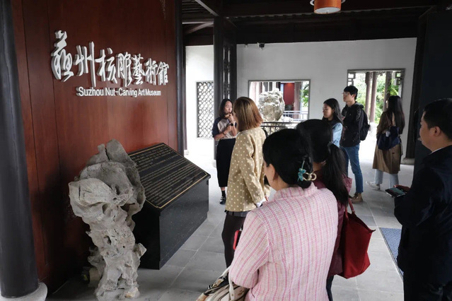 随后,采风团一行来到了香山街道的舟山核雕村,这里是近代中国核雕的发源地,拥有深厚的文化底蕴和精湛的核雕技艺。