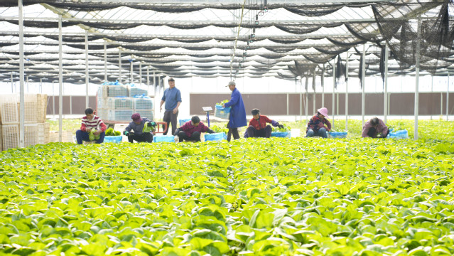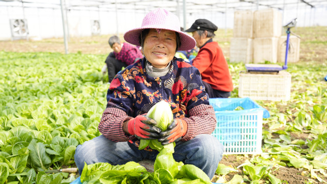 在如东县现代农业产业示范园东侧,温暖如春的杭白菜大棚里,负责人孙敦科和菜农们一早便来到地里忙活起来。采摘、装筐、搬运……8人分工明确、互相配合,一天能采收100多筐。