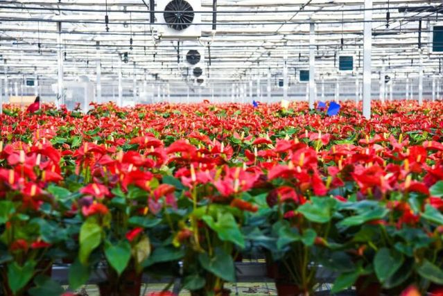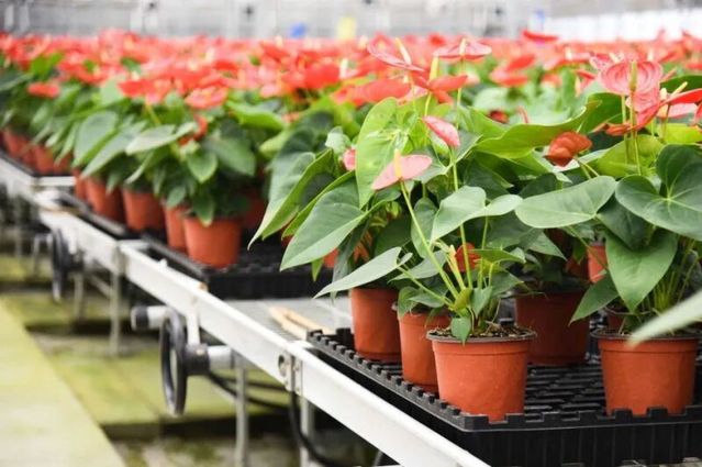 打造产业链,提升价值链。在苏中园艺自主研发的“61069”型智能温室大棚里,热带雨林的红掌在海陵生根发芽,无论室外天气多么恶劣,室内始终温暖如春,置身花海中有一种别样的浪漫。