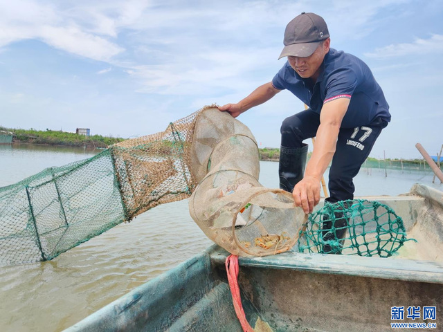 “我的父辈和祖辈都是蝤蛑养殖户。”王蒙边说边俯身捞起塘里长长的起笼网,几只生猛的蝤蛑已挥舞着钳子“跳”入船舱。