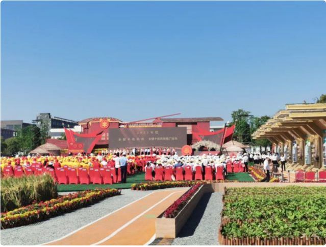 9月23日,中国农民丰收节主会场活动在嘉兴南湖区七星街道湘家荡举行,红船起航地向全国奏响了新时代的田园牧歌。在丰收节主会场左侧,是湘家荡数字农业工厂——嘉兴绿港农业科技有限公司。该公司是南湖农业经济开发区与湘家荡区域管委会共同推动现代农业和一二三产业融合发展的重点项目。据悉,该项目是嘉兴地区单体面积最大、国际技术领先的果蔬生产智能化高科技玻璃温室,建筑面积约3万平方米,可直接或间接带动新型职业技术农民500人。