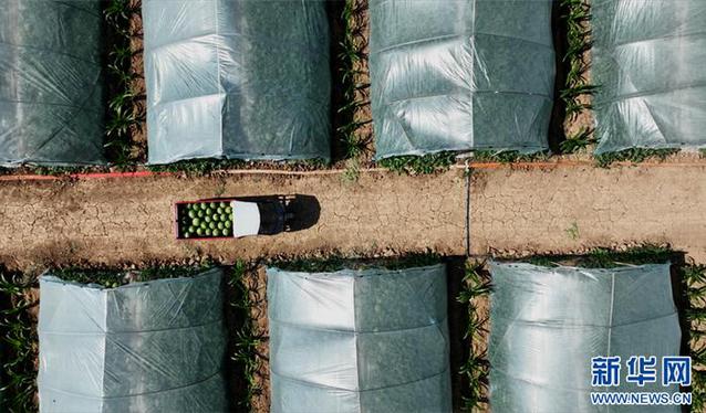 瓜农正在采摘西瓜。新华网发(徐浩 摄)