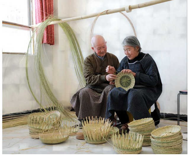 村里常常能看到三五成群围坐在一起的老艺人,专注地加工竹编产品。81岁的村民金松友就是其中的一员。“我现在手脚虽然没有以前那么利索了,但每天做竹编也能挣个百八十块钱,而且时间上还自由。”金松友说。