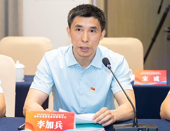 图为安徽省滁州市全椒县委常委、组织部部长李加兵在新时代基层党建创新研讨行圆桌论坛上发言。