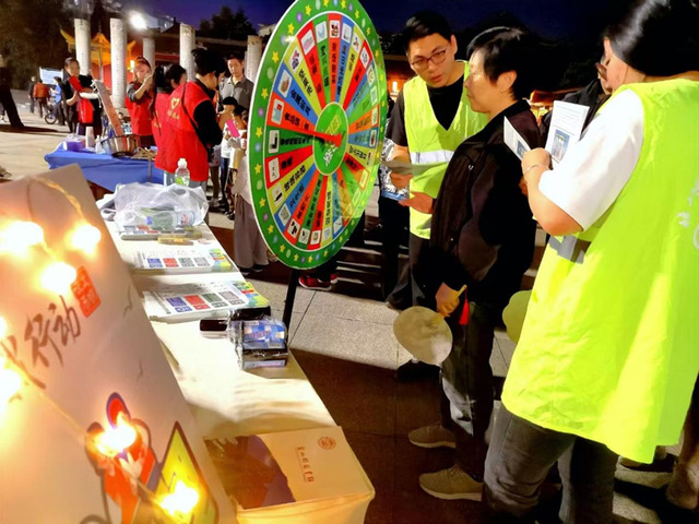 “文明夜市”现场,志愿者普及垃圾分类知识