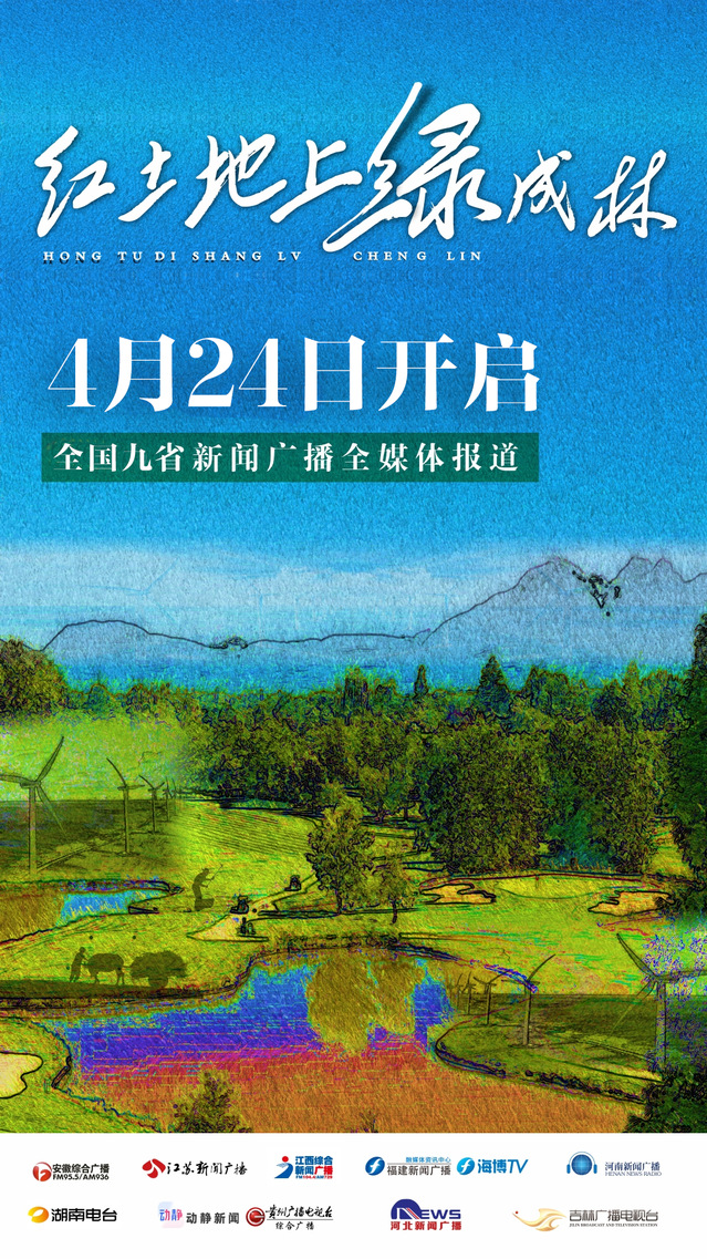 阳春四月,乘着习习春风,安徽广播电视台综合广播联合湖南、河南、贵州、江西、河北、福建、江苏、吉林8省新闻广播,共同推出全媒体报道《红土地上绿成林》,敬请收听收看!