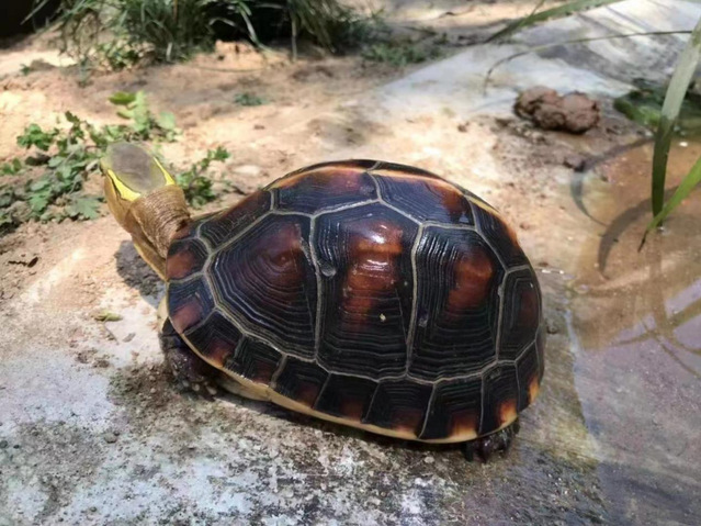 黄缘闭壳龟体型如一枚鹅蛋,龟背高高耸起的,龟壳锃光发亮,表面纹路清晰,黑红相间,边缘还有金黄色的“镶边”,性格活泼,在众多品种的龟里显得与众不同,集观赏性和较高的经济价值于一体。作为大别山独有的龟种,邓延森立即向相关部门申请养殖。铁冲乡对其养殖返乡创业大力支持,给予特色产业奖补,为养殖基地修路、建路灯,并请相关专家进行指导,大力支持人工饲养黄缘闭壳龟。“人工养殖黄缘闭壳龟,不仅能保护家乡的物种资源,带动家乡旅游业发展,还能帮助乡亲们入股分红,实现可观的经济收入,带动家乡发展。”邓延森说道。