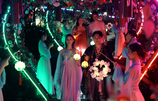 焕然一新的灵山景区内,古建筑群和商业街布局井然,吸引20余家餐饮、文创、非遗体验、休闲娱乐等商铺入驻。为推动夜经济发展,景区还常态化推出“不夜灵山·浪漫爱情计划”“爱不落市集”“提灯夜游”等丰富多彩的夜间体验活动,打造夜间消费新场景。“五一”试运营以来,灵山景区共接待游客10万余人,营业收入达300余万元。