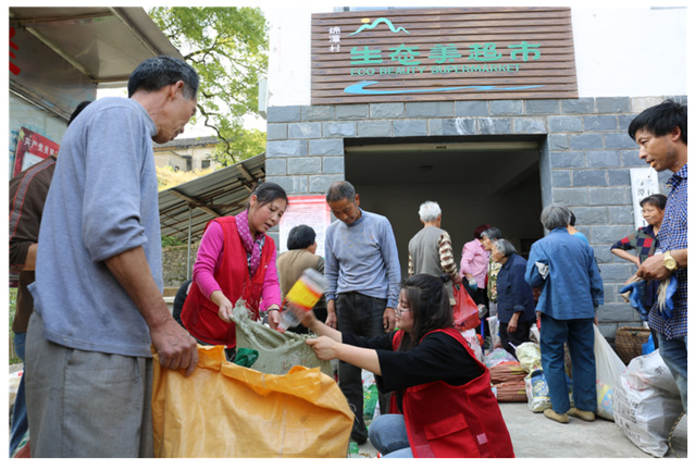 图为村民在“生态美超市”兑换生活用品