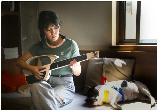 一幢名叫“咖啡陪你”的民宿里,热烈的阳光斜斜洒在室内,来自陕西的大曹弹着心爱的吉他,一只小狗依偎在她的身旁,慵懒地在阳光下打着盹。