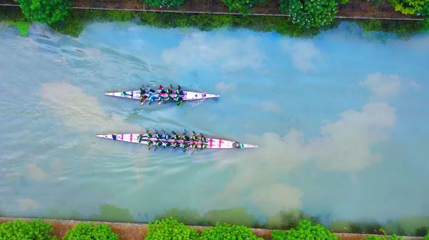 回龙村因其丰富的水系资源,享有得天独厚的地理和历史文化优势,为了进一步丰富村民的文娱生活,回龙村充分挖掘村内素来就有的“赛龙舟”传统水上活动,通过改造一个毗邻旺塔泾河道、占地85平方米的老仓库,将它打造成为以“舟楫文化”为主题,集教育、培训、休闲等功能于一体的舟楫文化馆,继承和发扬团结拼搏的龙舟精神。