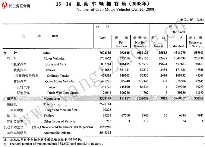 机动车辆拥有量(2008年)