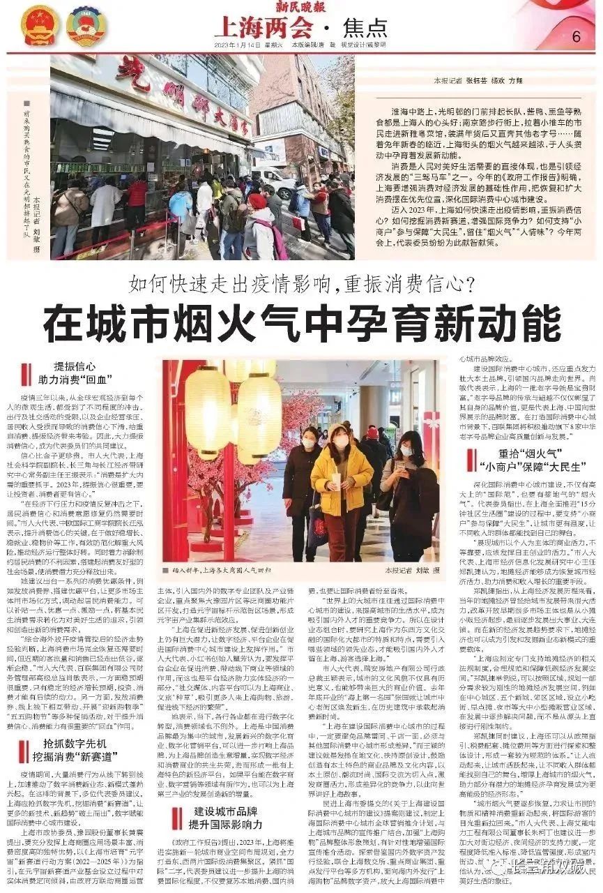 迈入2023年,上海如何快速走出疫情影响,重振消费信心?如何挖掘消费新赛道,增强国际竞争力?如何支持“小商户”参与保障“大民生”,留住“烟火气”“人情味”?今年两会上,代表委员纷纷为此献智献策。