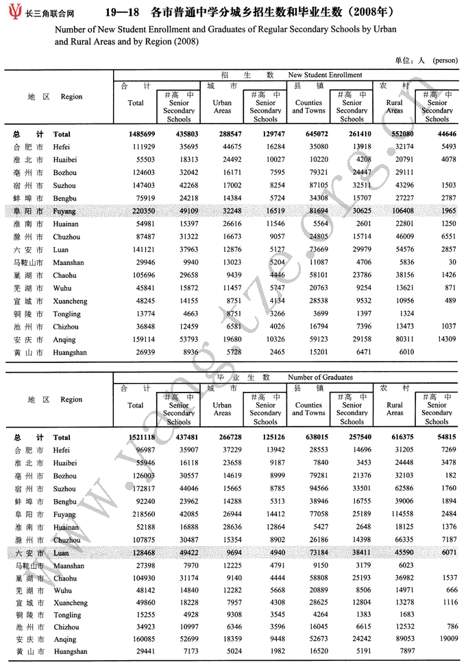 各市普通中学分城乡招生数和毕业生数(2008年)