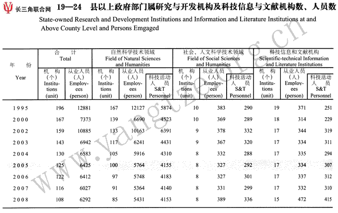 县以上政府部门属研究与开发机构及科技信息与文献机构数、人员数