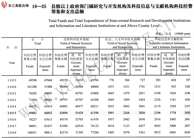 县级以上政府部门属研究与开发机构及科技信息与文献机构科技经费筹集和支出总额