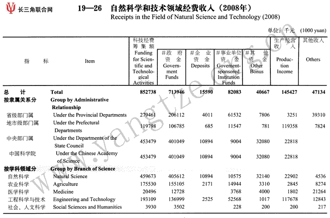 自然科学和技术领域经费收入(2008年)