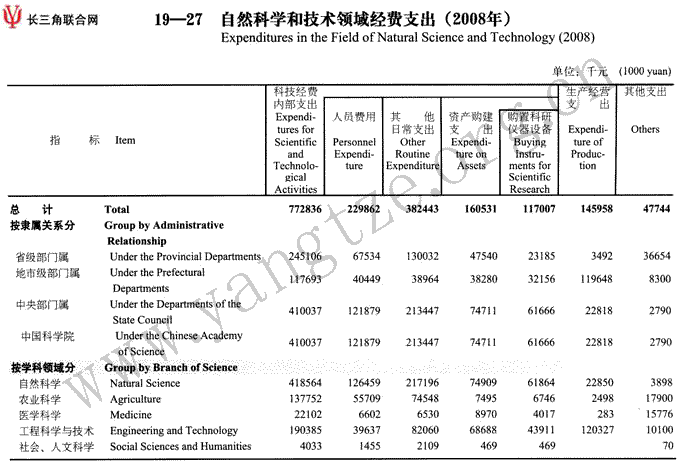 自然科学和技术领域经费支出(2008年)