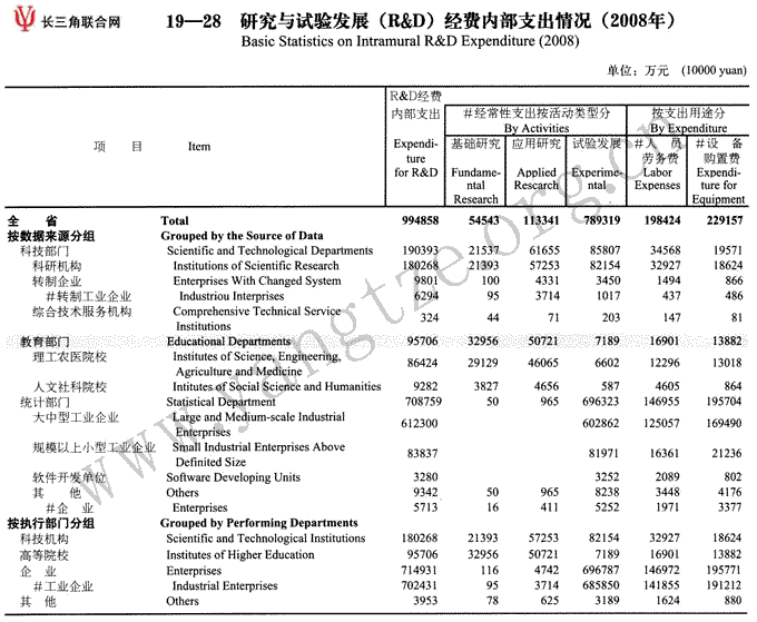 研究与试验发展(R&D)经费内部支出情况(2008年)