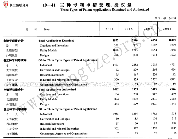 三种专利申请受理、授权量