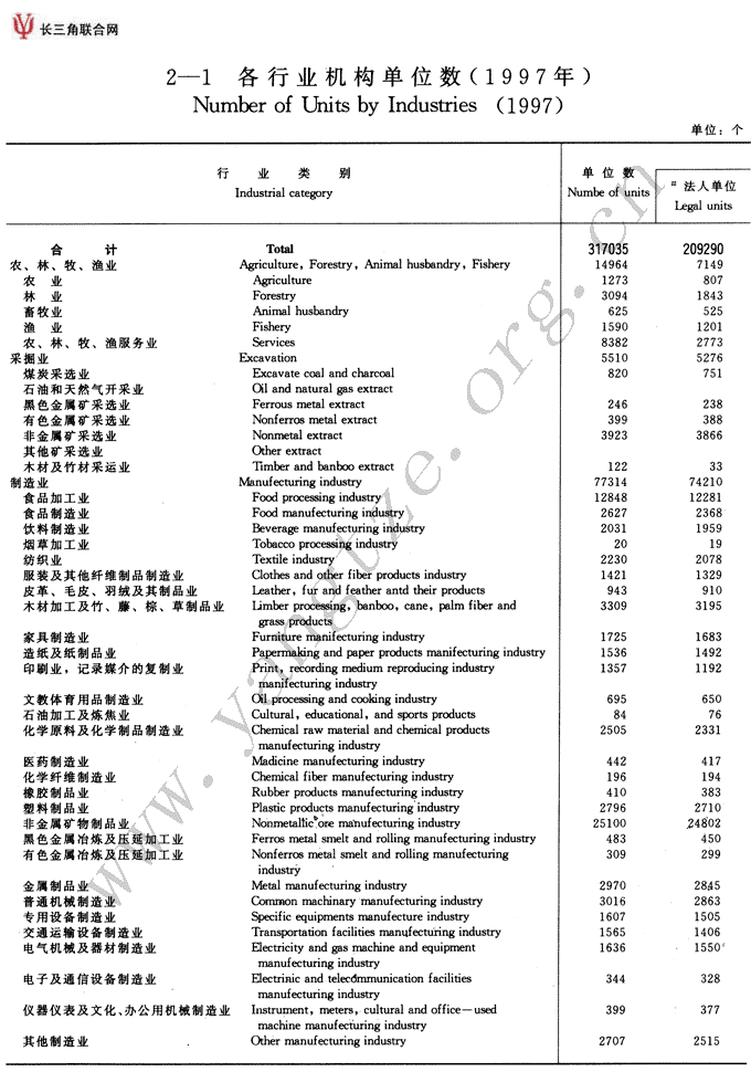 各行业机构单位数(1997年)