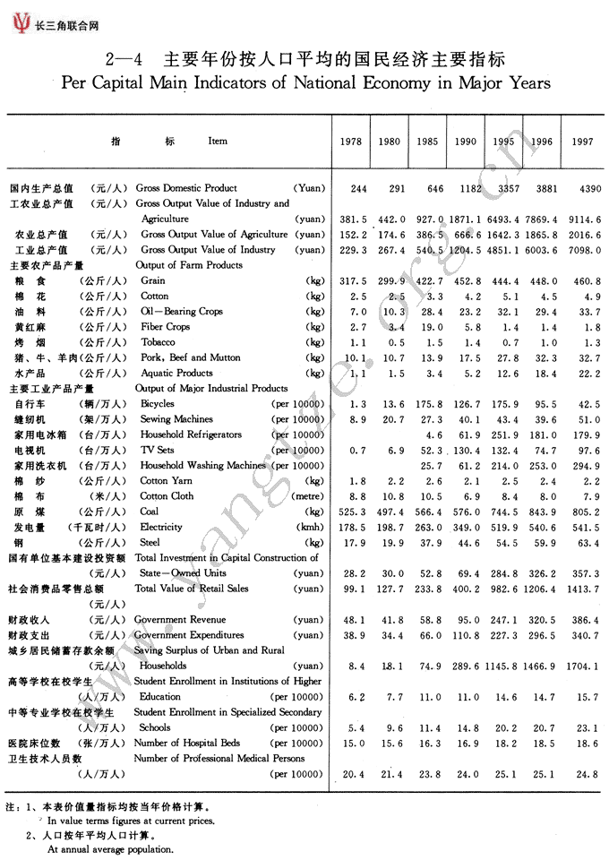 主要年份按人口平均的...