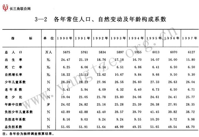 各年常住人口、自然变动及年龄构成系数