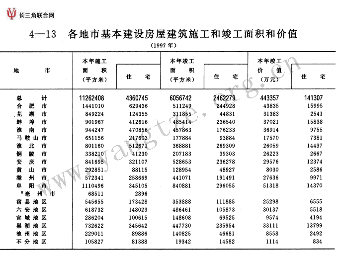 各地市基本建设房屋建筑施工和竣工面积和价值