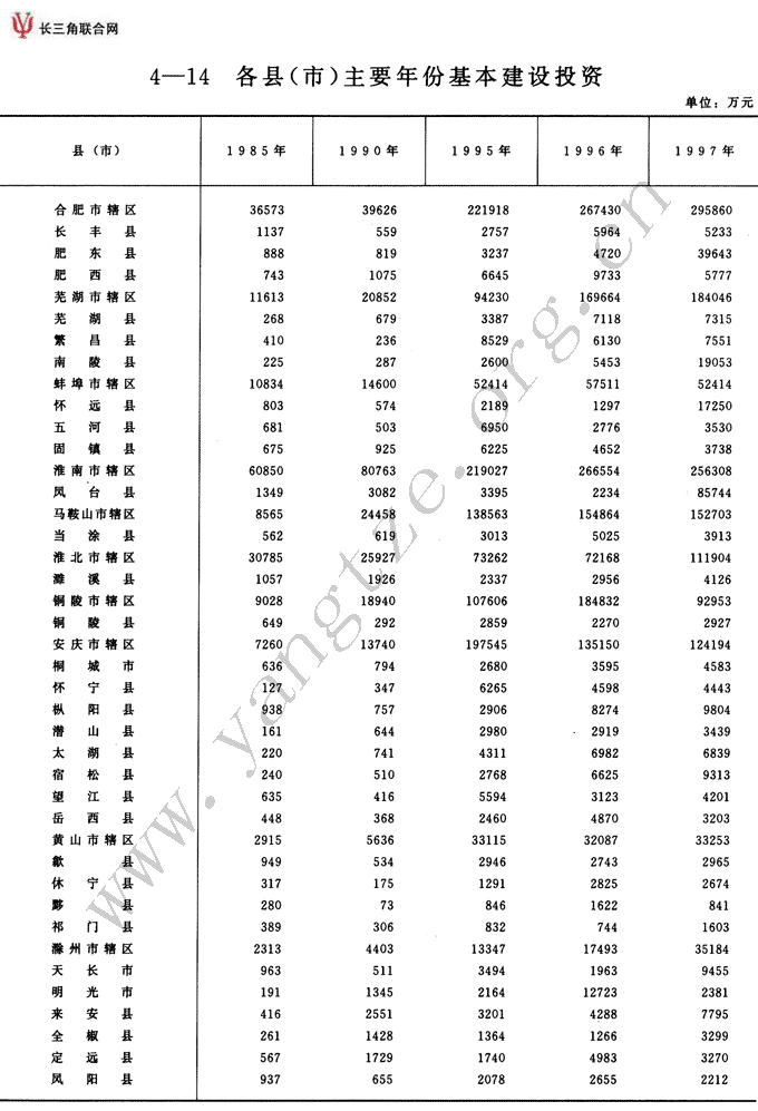各县(市)主要年份基本建设投资