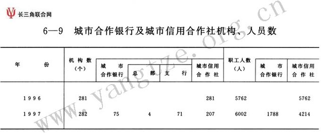 城市合作银行及城市信用社机构、人员数