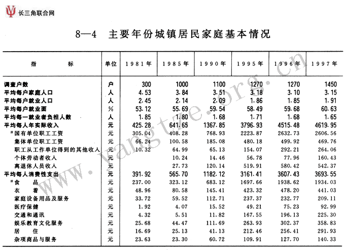 主要年份城镇居民家庭基本情况