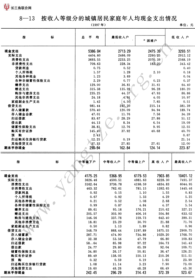 按收入等级分的城镇居民家庭年人均现金支出情况(1997年)