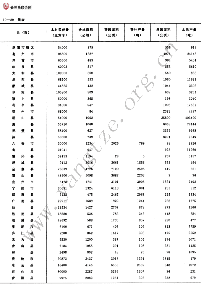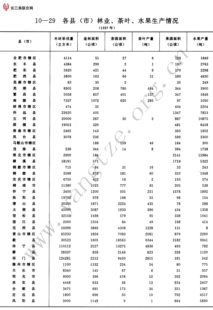 各县(市)林业、茶叶、水果生产情况(1997年)