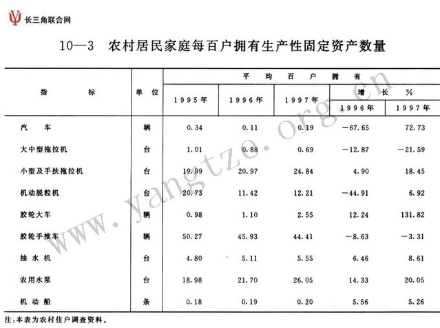 农村居民家庭平均每百户拥有生产性固定资产数量