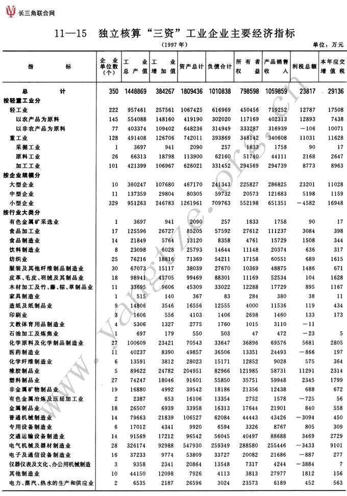 独立核算“三资”工业企业主要经济指标(1997年)
