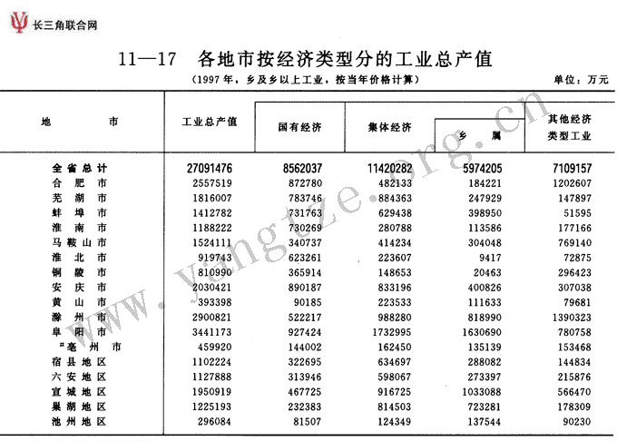 各地市按经济类型分的工业总产值(1997年,乡及乡以上工业,按当年价格计算)