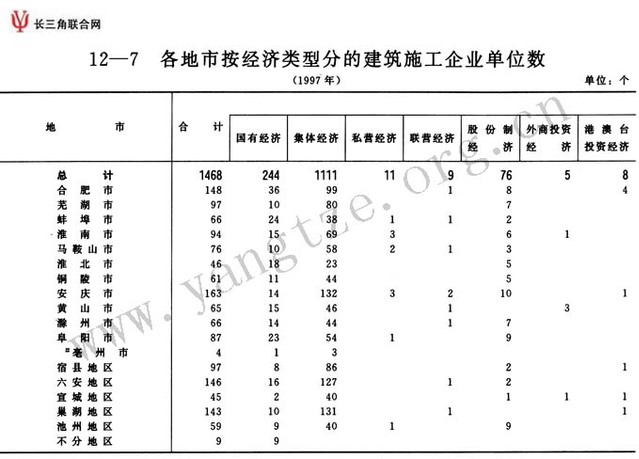 各地市按经济类型分的建筑施工企业单位数(1997年)