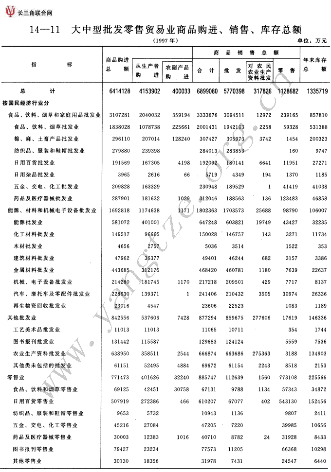大中型批发零售贸易业商品购进、销售、库存总额(1997年)