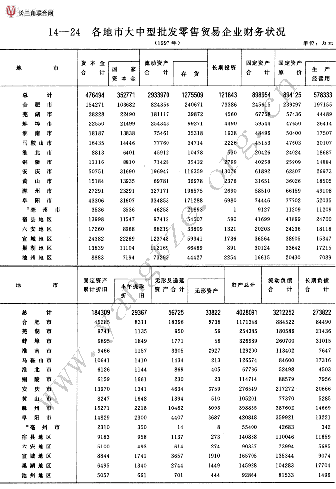 各地市大中型批发零售贸易企业财务状况(1997年)