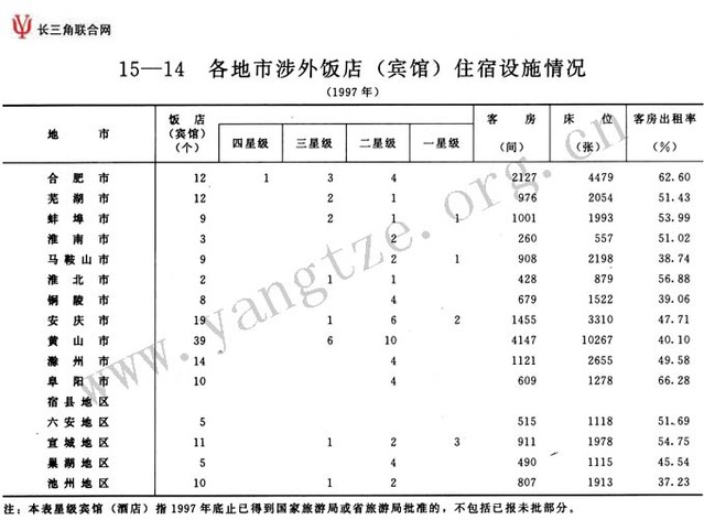 各地市涉外饭店(宾馆)住宿设施情况(1997年)