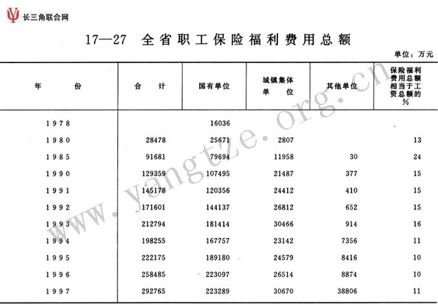全省职工保险福利费用总额