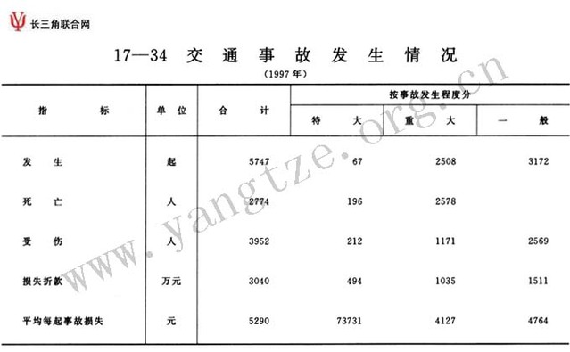 交通事故发生情况(1997年)