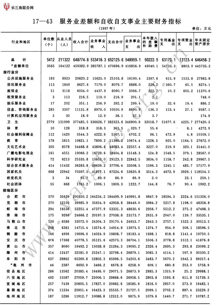 服务业差额和自收自支事业主要财务指标(1997年)