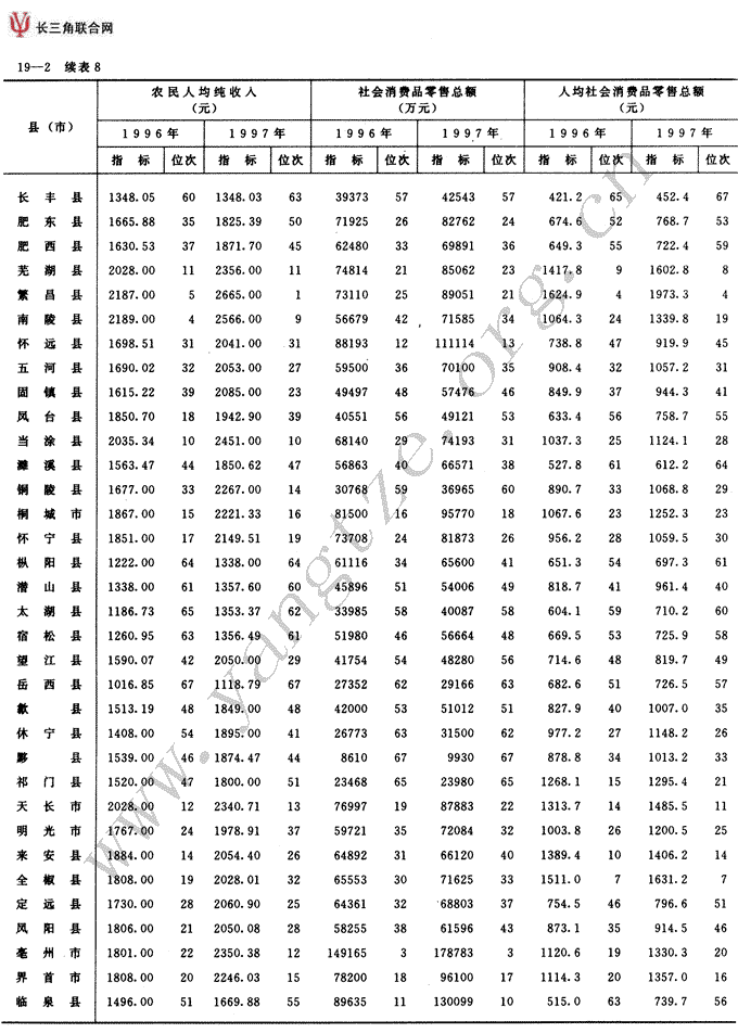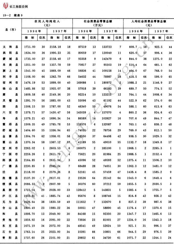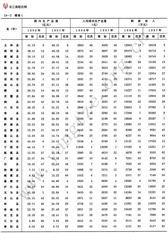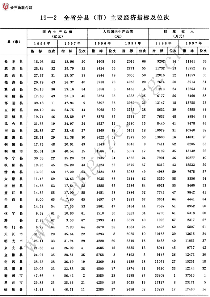全省分县(市)级主要经济指标及位次
