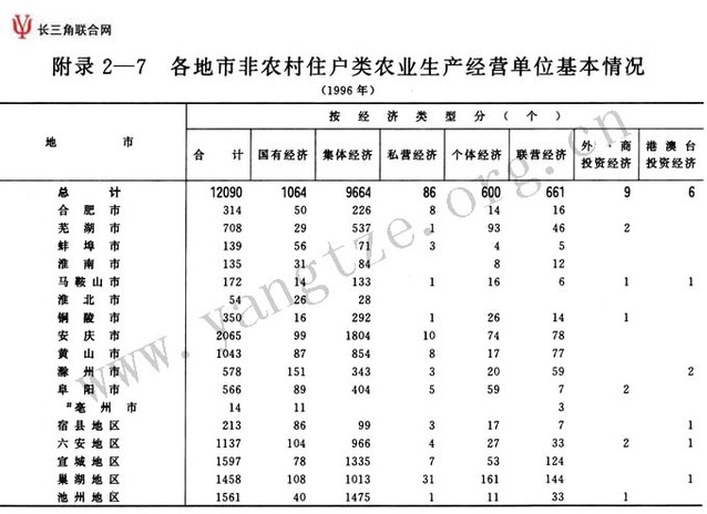 各地市非农村住户类农业生产经营单位基本情况(1996年)