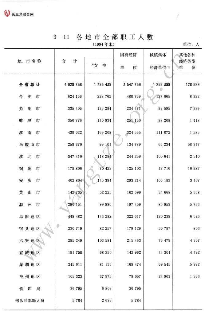 各地市全部职工人数