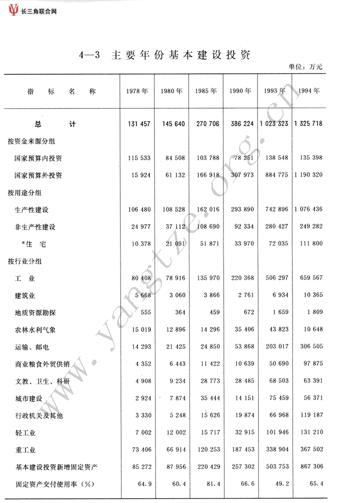 主要年份基本建设投资