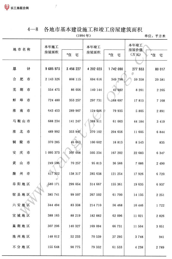 各地市基本建设施工和竣工房屋建筑面积
