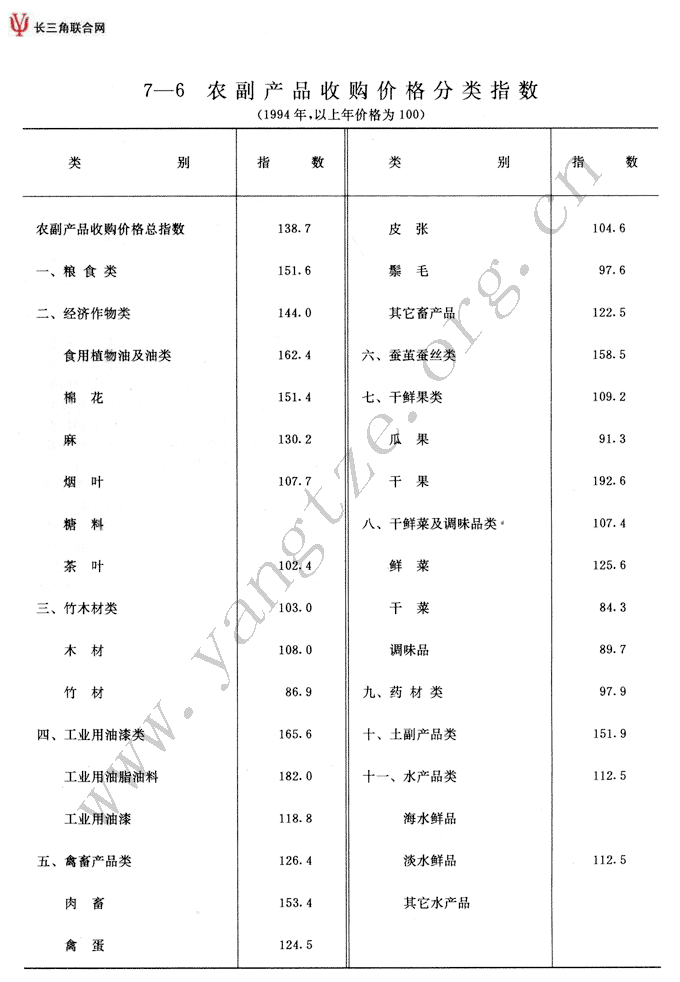 农副产品收购价格分类指数